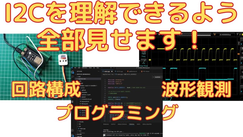 M5Stackの「ENVⅢセンサー」にも使われているSHT30を題材に、PlatformIOを使ったプログラミングから、実際の通信波形の解析までを体験していきます!