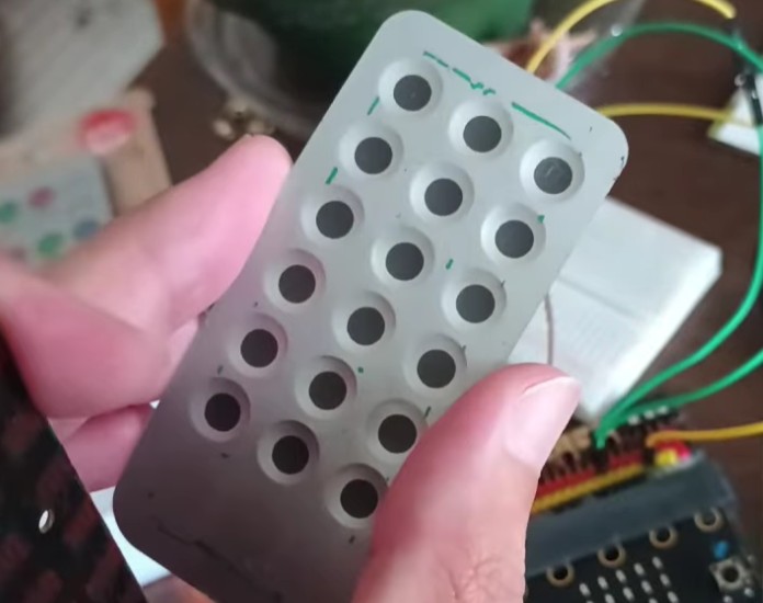 裏面には複数のスイッチが配置されており、表側のフィルム状のボタンと連動しています。