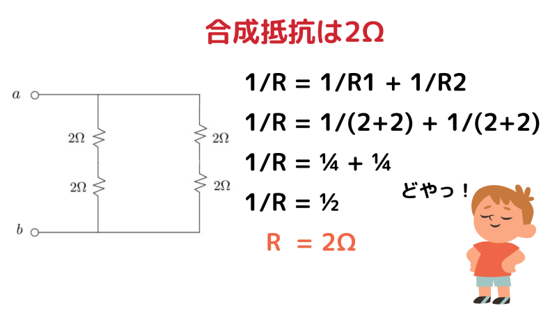 - 結果として、合成抵抗は 2Ω